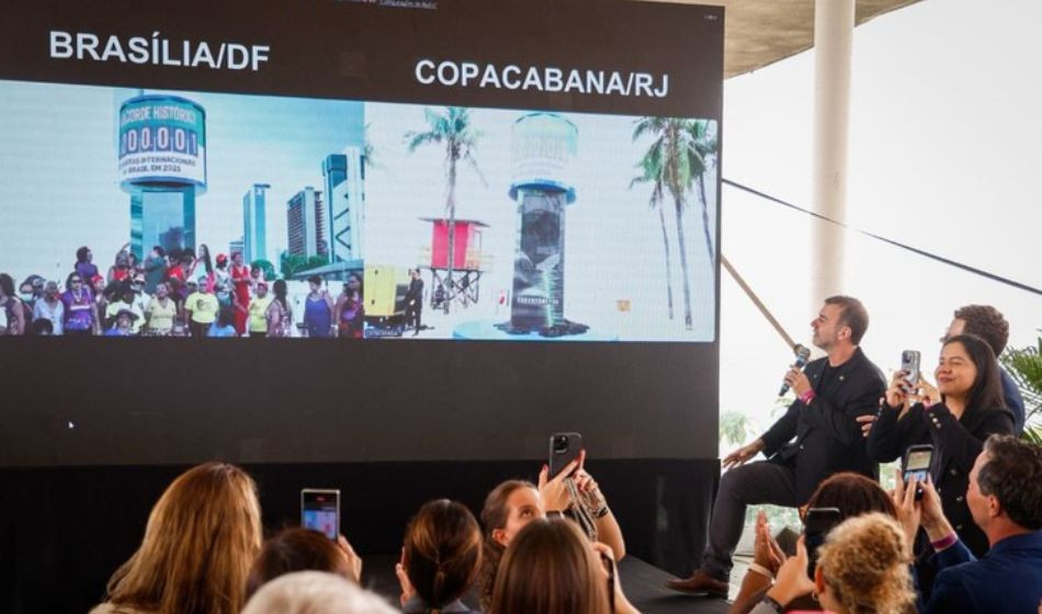 A solenidade foi comandada pelo presidente da Embratur, Marcelo Freixo, que iniciou a contagem para um resultado ainda mais ambicioso: mais de 9 milhões de visitantes estrangeiros no Brasil até 31 de dezembro. Para acompanhar o progresso, em tempo real, foram implementados dois “turistômetros”: painéis com cinco metros de altura e projeção de IA que exibem o volume de chegadas de turistas internacionais do país. Um foi instalado na Orla de Copacabana, no Rio de Janeiro, e outro na Esplanada dos Ministérios, em Brasília.
