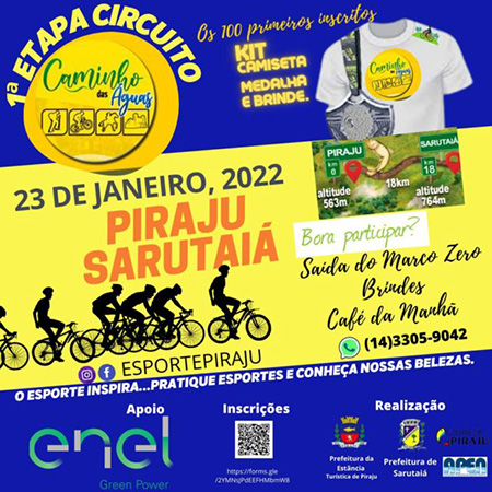 O percurso prevê os cerca de 20 km iniciais da rota Caminho das Águas, entre as cidades de Piraju e Sarutaiá. O evento está marcado para o dia 23 de janeiro.
