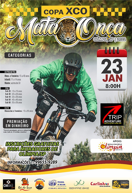O evento acontece no dia 23 de janeiro (domingo), a partir das 8h. O Mountain bike estilo XCO ou Cross Country Olímpico é uma modalidade popular e mais radical, com provas em forma de circuitos. O estilo XCO possui competição mundial anual e consiste numa corrida de percurso técnico moderado, repleto de obstáculos, subidas e descidas em estradas de terra irregulares.