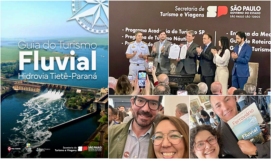 Nesta quarta-feira, 6 de novembro, o governador Tarcísio de Freitas e o Secretário de Estado de Turismo e Viagens, Roberto de Lucena, lançaram o Guia do Turismo Fluvial da Hidrovia Tietê-Paraná. Desenvolvido pelo jornalista Gabriel Pitta e pela designer Daniela Ciola, ambos da Associação das Prefeituras das Cidades Estância do Estado de São Paulo (Aprecesp), e pelo consultor técnico Paulo Fax, do Fórum Náutico, o guia é fruto de uma parceria entre SETUR/SP, Aprecesp e o Fórum Náutico, com o objetivo de fortalecer o turismo nos municípios ribeirinhos de São Paulo.